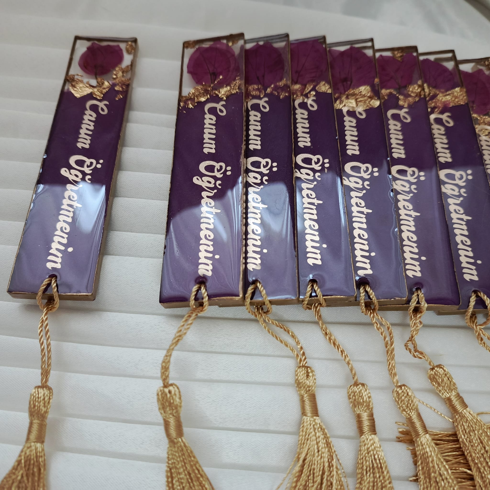 Kurutulmuşn Begonvil yaprakları kullanılarak hazırlanan Öğretmenlerimize özel kitap ayraçlarımız.